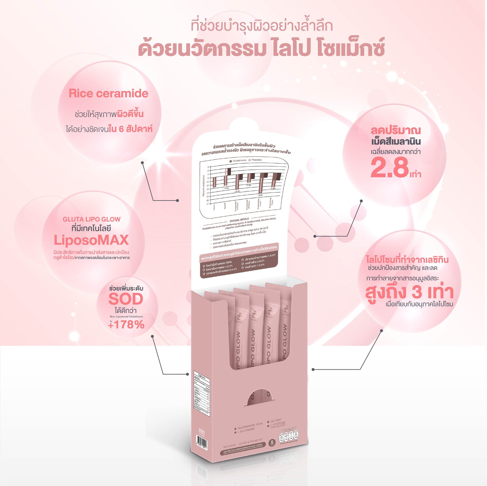 Gluta Lipo Glow is a dietary supplement featuring Liposomax™ Glutathione technology developed in the USA for optimal absorption. It combines key amino acids and skin‑supporting nutrients — L‑Glutamine, Glycine, Cystine, and Niacinamide — to promote even‑toned, healthy‑looking skin from within.