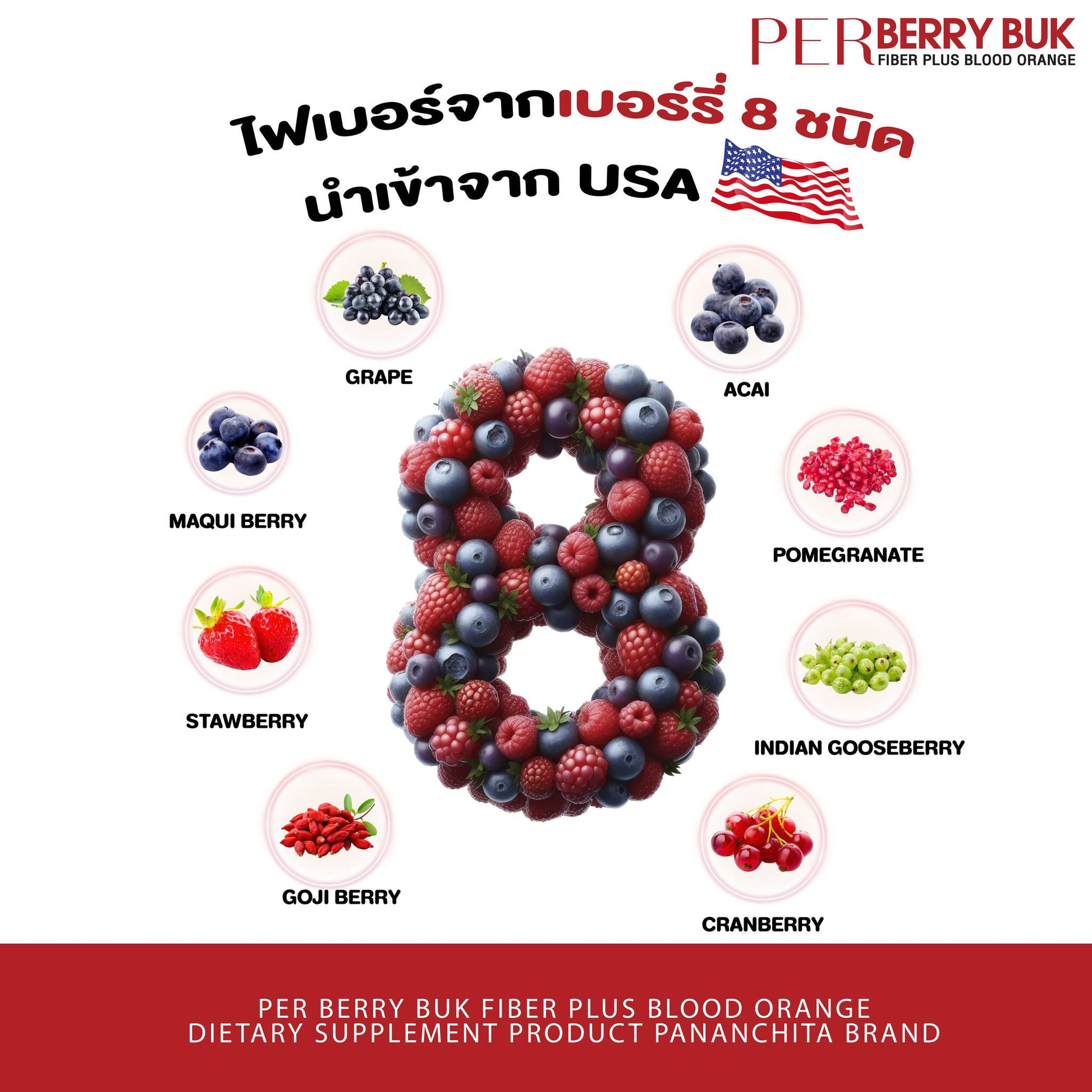 - Made with 8 berries & blood orange extract