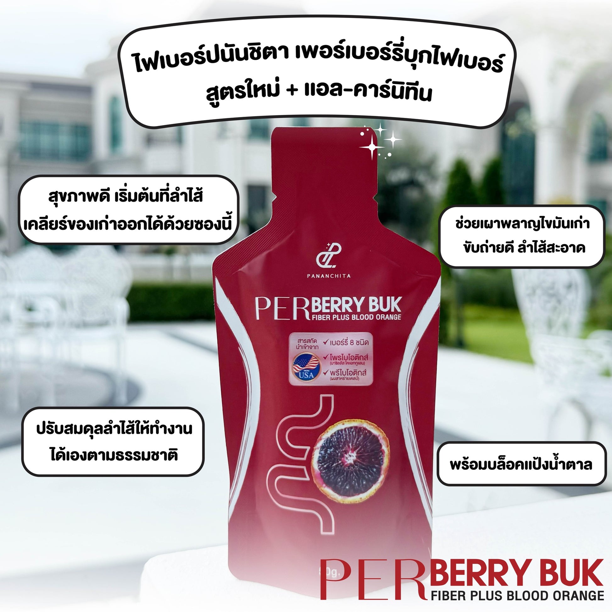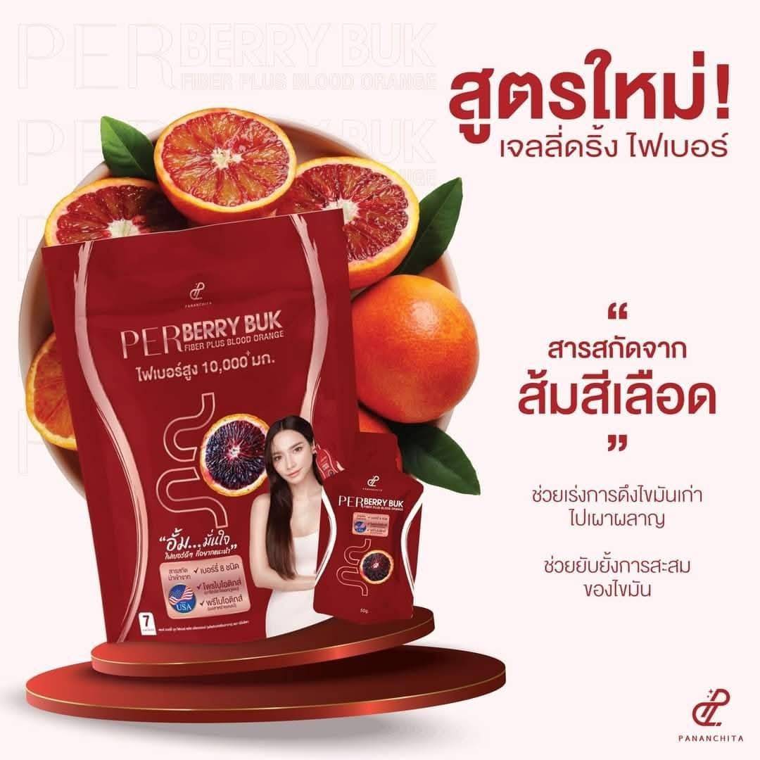 Per Berry Buk Fiber Plus Blood Orange is a ready-to-drink fiber jelly supplement formulated with: